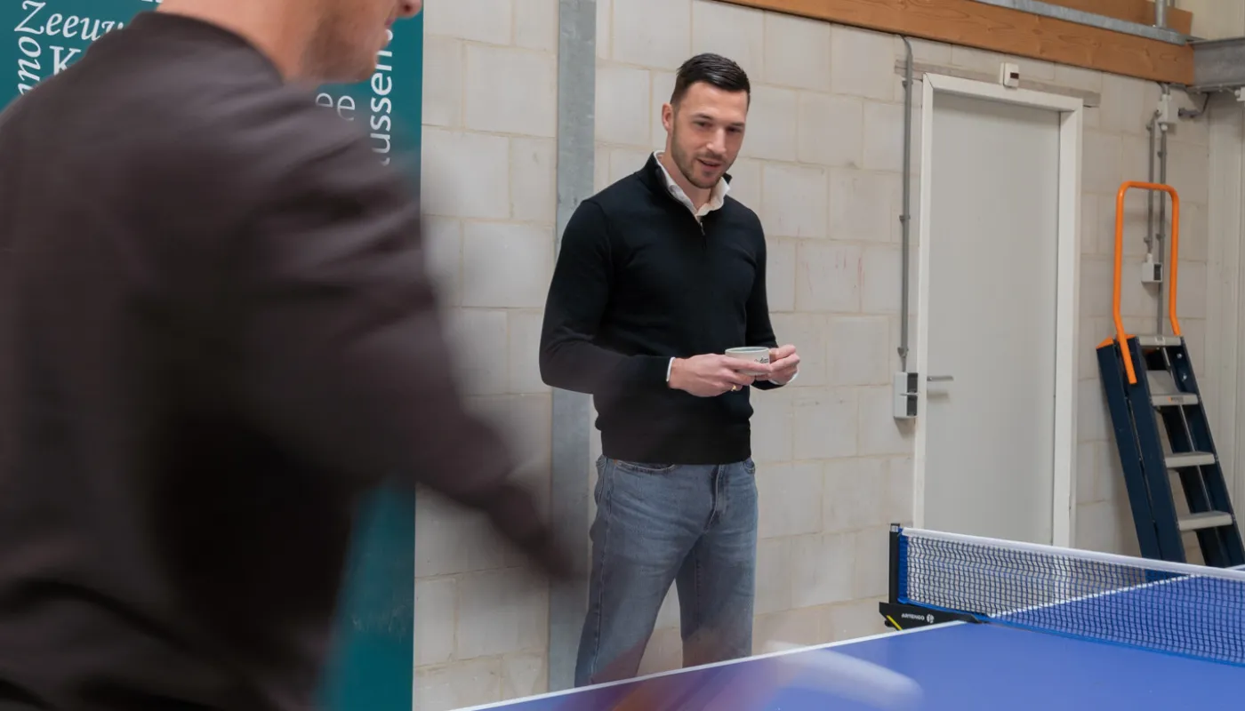 Je werkt in een hecht team van 8 collega’s. Iedereen werkt zelfstandig, maar je staat er nooit alleen voor. Je helpt elkaar, spart over lastige casussen en er is altijd ruimte voor een grap of een potje tafeltennis in de pauze.